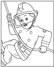Fireman Sam with Penny Morris in a fire truck coloring page